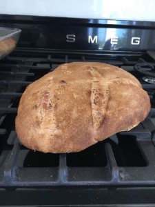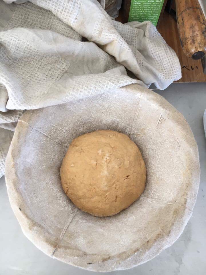 (4) et puis, et puis : 500 gr de farine, 133 gr de chef et  333 d’eau ( + 16 gr de sel ) et quelques heures plus tard, le premier pain au levain d’Italie !!!!