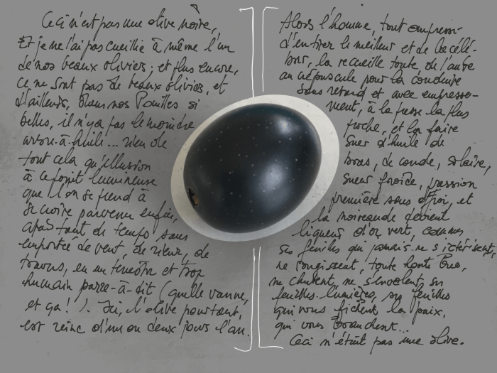 La boucle est ainsi tristement bouclée, au départ d’une minuscule récolte, pour quelques olives de plus, dans une existence de total privilège même si un peu méritée et de toute très chanceuse …